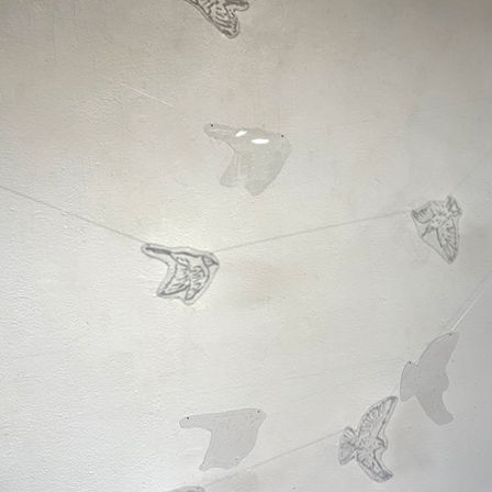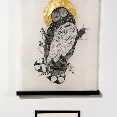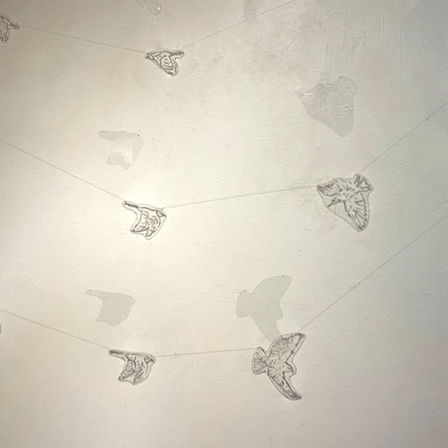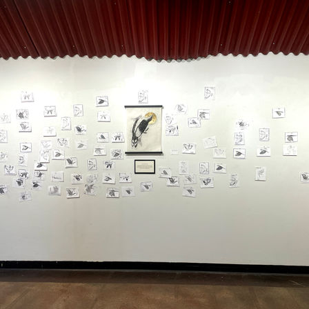 Martyrs and Ghosts was a 2025 solo exhibition of work by Amelia Rafle, shown at the Artworks gallery in downtown Richmond, VA. The work exhibited examines ecological and multispecies grief in the face of the climate crisis. Visitors were invited to consider native Virginia bird species as martyrs of the Anthropocene, as well as contribute their own prints to an interactive memorial flock.